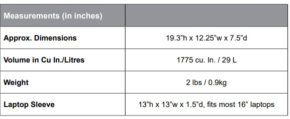 - Padded laptop sleeve in main compartment